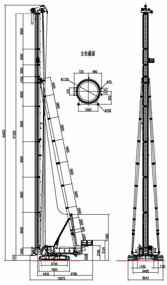 Rear Length m 30,33,36,39,42,45,48,(51,54,57,62) Non-rotating; values in parentheses are for special equipment