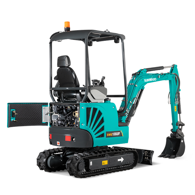 It is a 4-pole canopy mini excavator equipped with a zero tail chassis and variable tracks